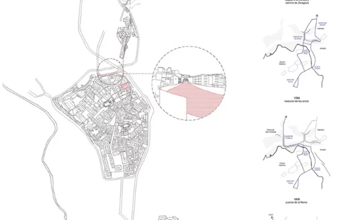 En la conexión norte de la ciudad de Teruel coinciden importantes infraestructuras históricas para generar una unión singular a diferentes niveles. Se redefine un tramo de calle a lo largo de la calle Miguel Ibáñez para mejorar las condiciones de peatón en la cota alta de la ciudad, al tiempo que surge un nuevo punto de observación de las singularidades del lugar que vincula el verde de la cota inferior y el poder de las murallas históricas y puentes-